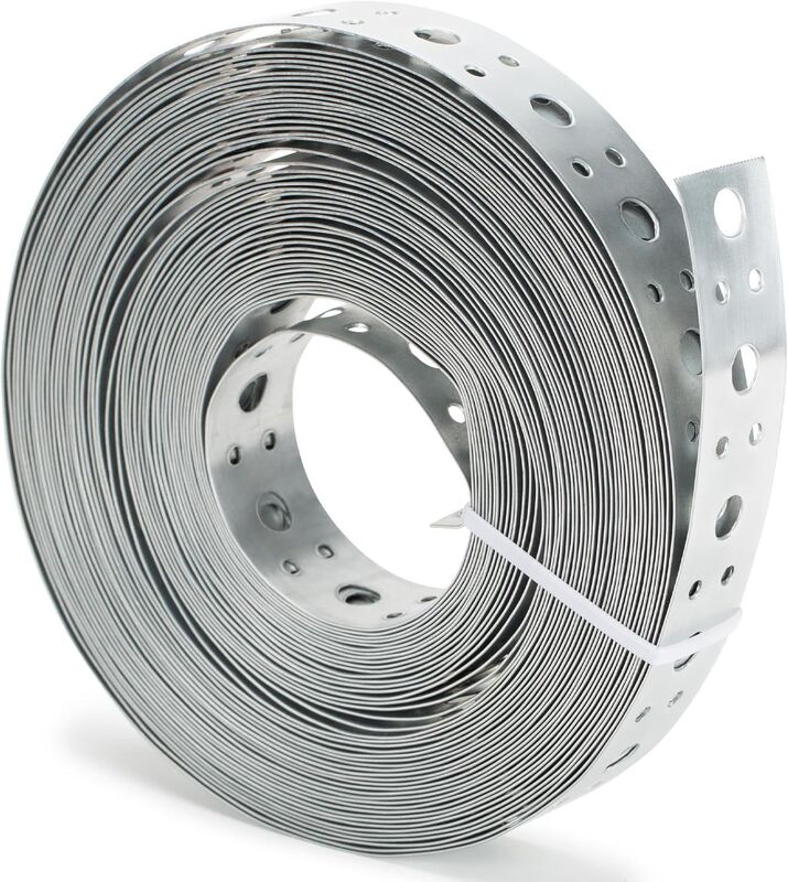 Axisculpt Cintas de aço galvanizado com furos pré-perfurados alternados de 1/4 de polegada ou 3/17 de polegada, concebidos para a fixação segura de tubos de vários tamanhos.